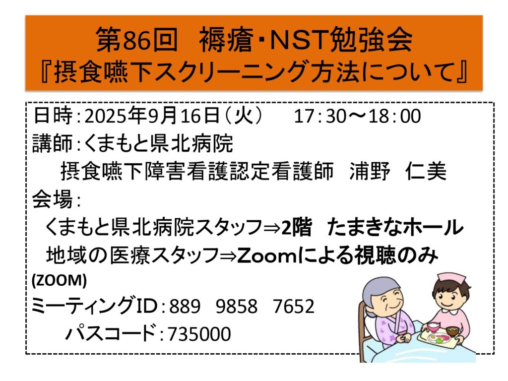 第86回褥瘡・NST勉強会「摂食嚥下スクリーニングについて」