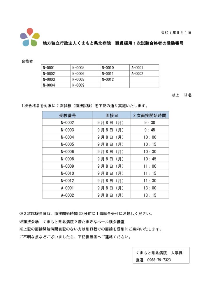 2025年8月23日実施くまもと県北病院職員採用試験結果