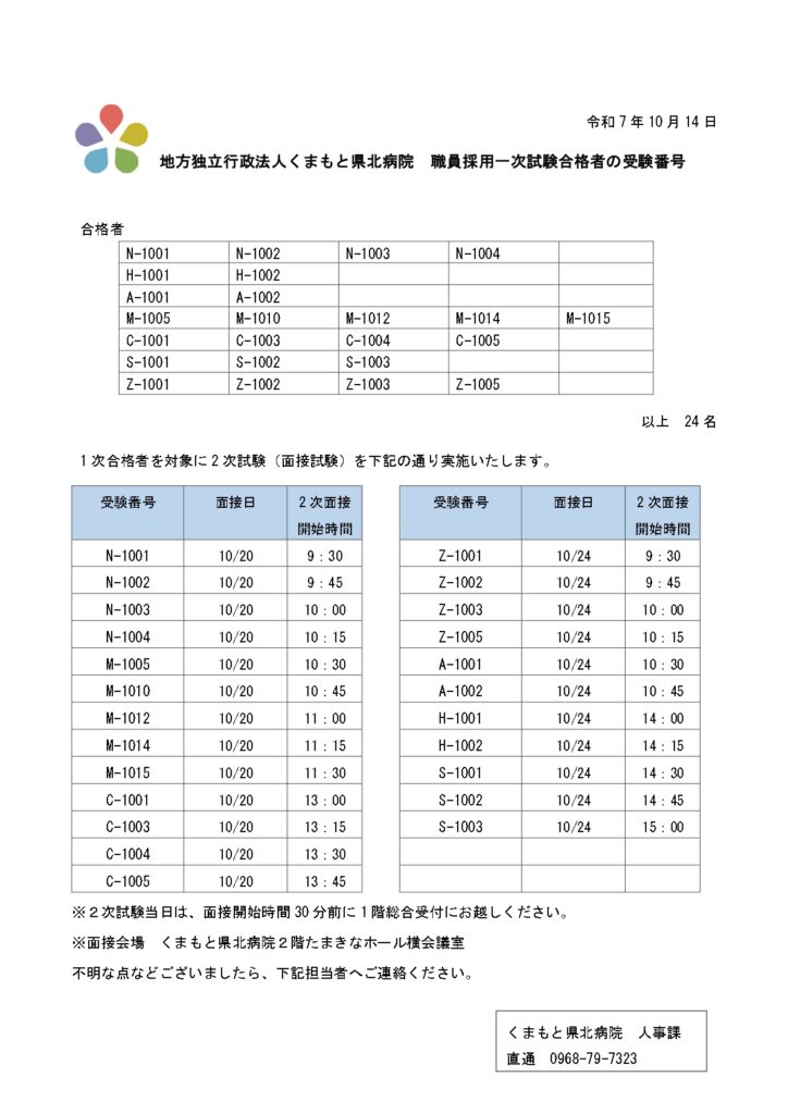 2025年10月5日実施くまもと県北病院職員採用試験結果